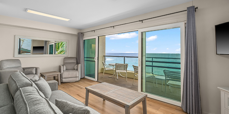 Poʻipū Shores' vacation condos offer laid-back island living with stunning Pacific Ocean views, upgraded room features, and resort amenities. Our beachfront resort has two barbeque areas and a heated freshwater swimming pool that’s home to "The Hut" - an open-air lounge area where you can unwind in the year-round Poʻipū sun. We also provide Free Parking for guests so you explore Kauaʻi and return with ease.